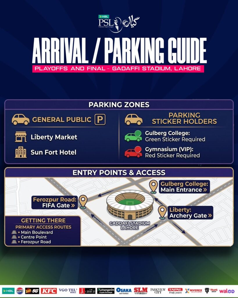 Following these PCB instructions will help you avoid the traffic snarls common during HBL PSL 2026 matches. Grab your flags, follow the signs, and get ready for an electric atmosphere at the home of Pakistan cricket.