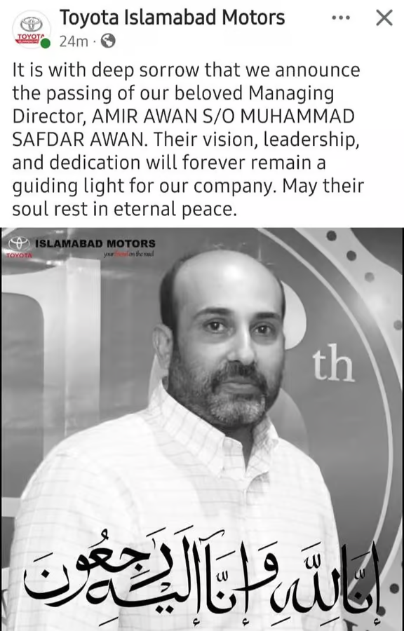 Aamir Awan served as a known figure in Pakistan’s automotive sector. His death raises questions about security in Islamabad’s upscale areas and the effectiveness of the Safe City camera network.